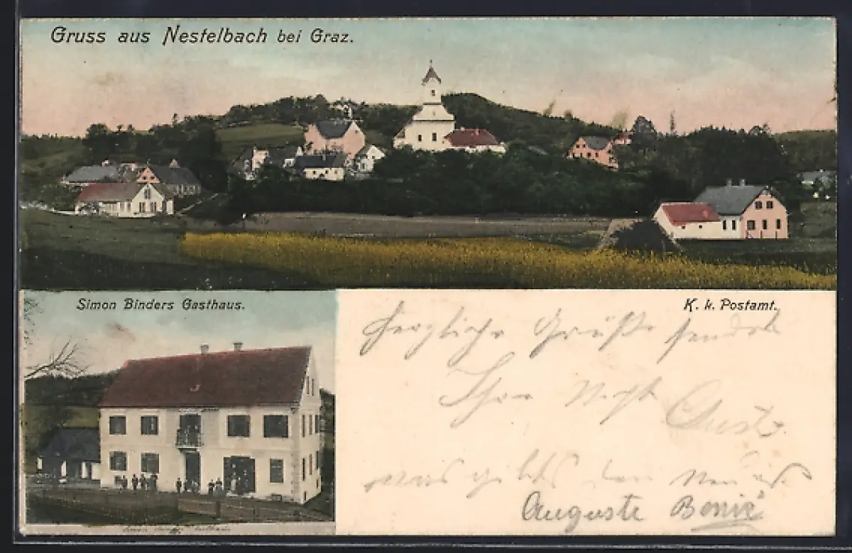 AK Nestelbach bei Graz, Simon Binders Gasthaus, K. k. Postamt