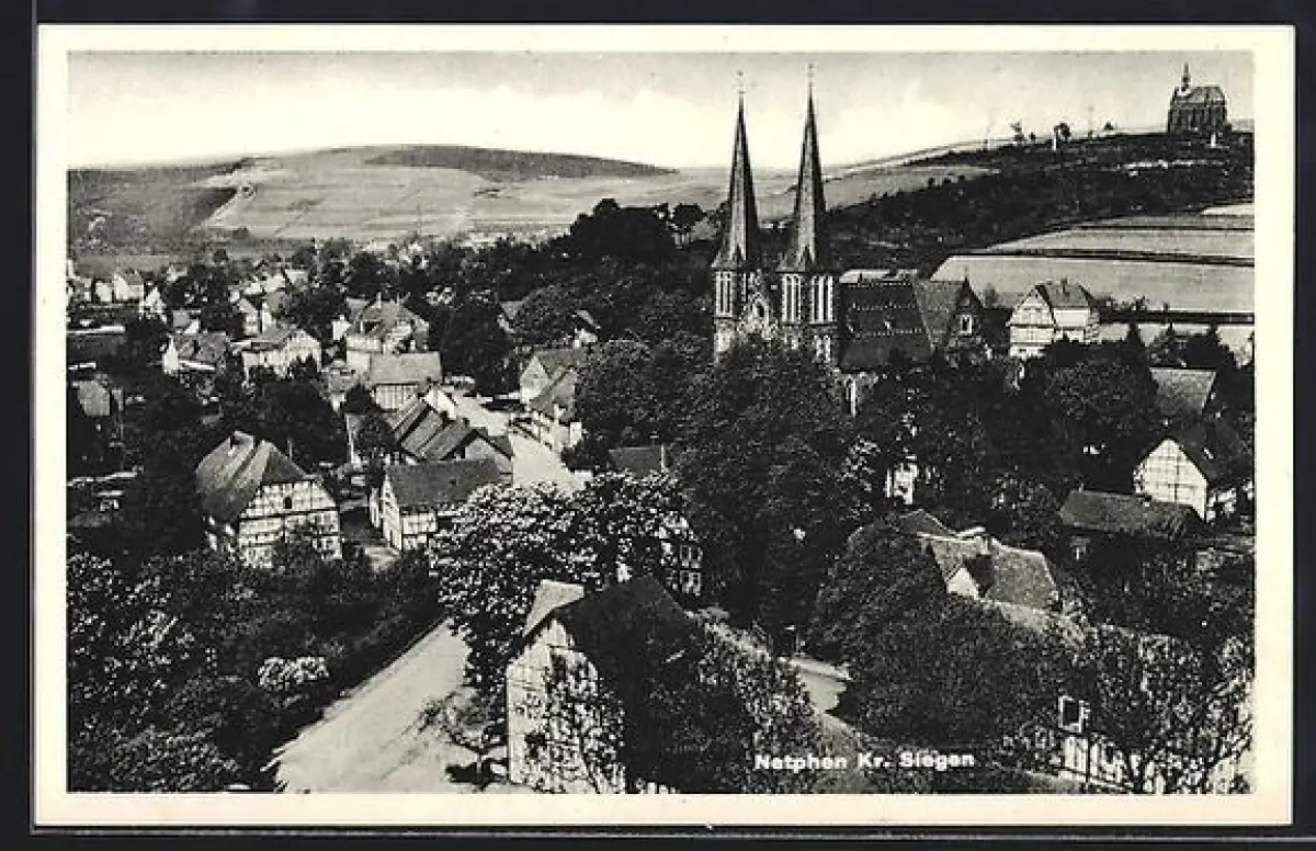 AK Netphen /Siegen, Ortsansicht mit Kirche