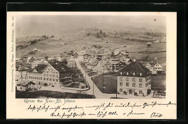 AK Neu-St. Johann, Ortspartie aus der Vogelschau