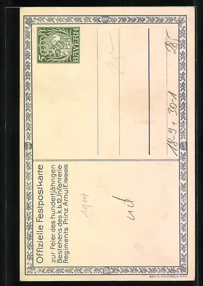 AK Neu-Ulm, Feier des 100jähr. Bestehens des k. b. 12. Infanterie-Regiments Prinz Arnulf, Stadt, Ganzsache Bayern