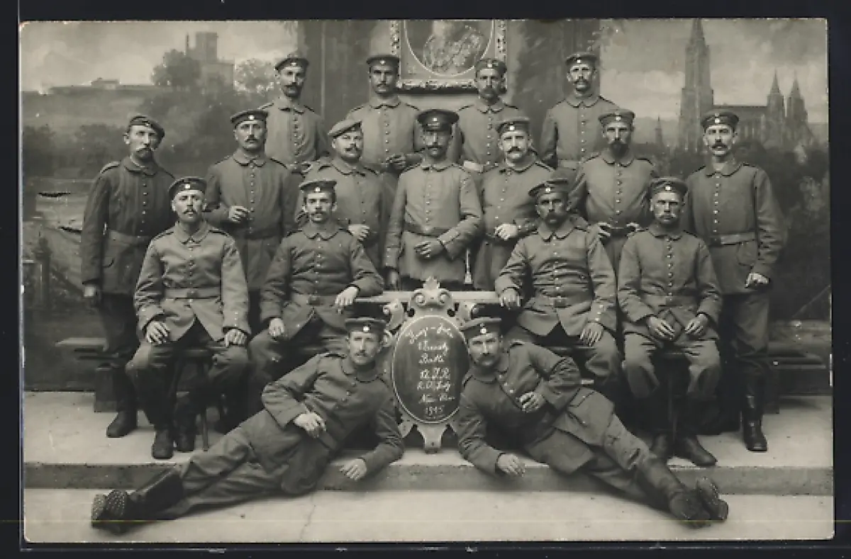 AK Neu-Ulm, Soldaten des 1. Ersatz-Bataillons des 12. Infaterie-Regiments im Jahr 1915