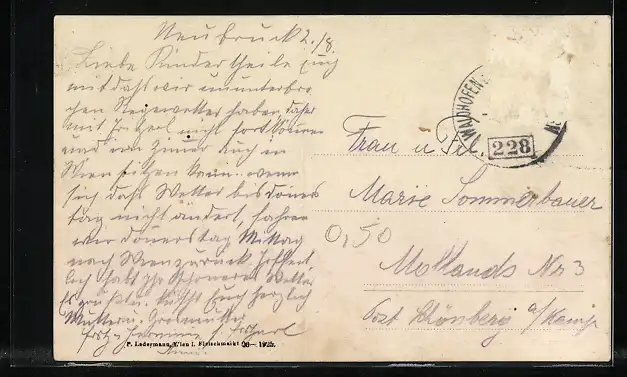 alte Ansichtskarte, gelaufen, Briefmarke entfernt, rückseitig Oberflächenschaden, guter Zustand