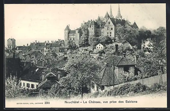 AK Neuchâtel, Le Château, vue prise des Sablons