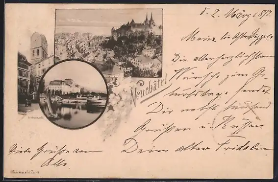 AK Neuchâtel, Ortsansicht mit dem Schloss, Uferpartie, Ortspartie