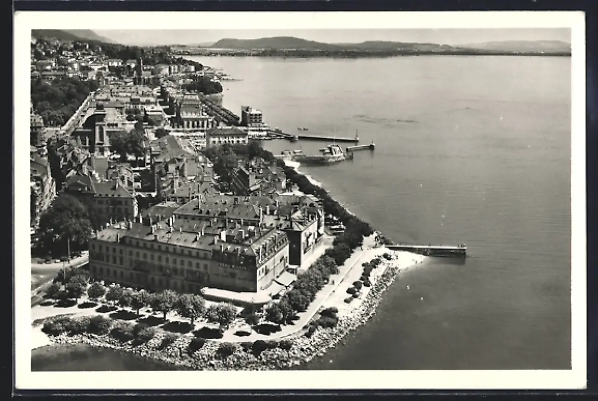 AK Neuchatel, Vue aerienne, Rest. Beau-Rivage-Quick