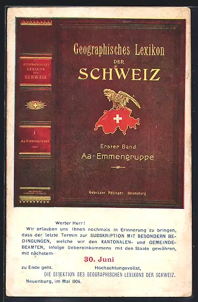 AK Neuenburg, Direktion des Geographischen Lexikons der Schweiz, Mai 1904
