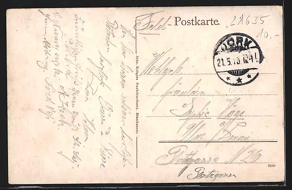 alte Ansichtskarte, gelaufen 1910, Eckknick li. oben, guter Zustand