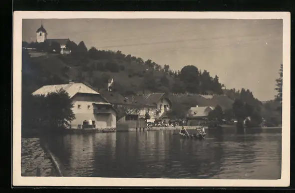 AK Neufelden, Häuser am Ufer, kleines Ruderboot