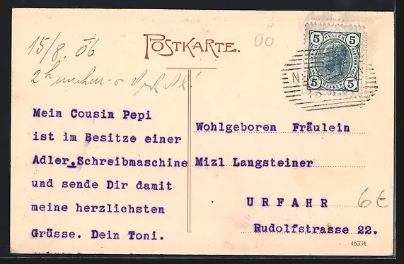alte Ansichtskarte, gelaufen 1906, guter Zustand