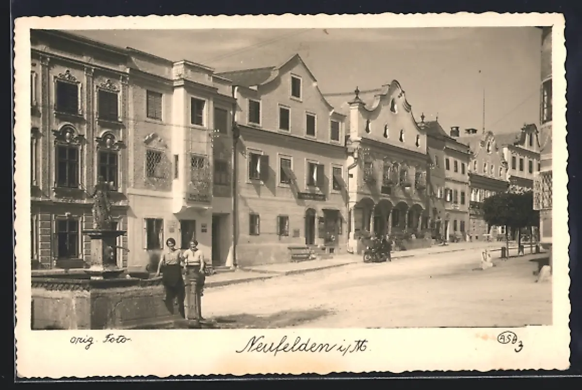 AK Neufelden i. M., Ortspartie mit Frauen am Brunnen