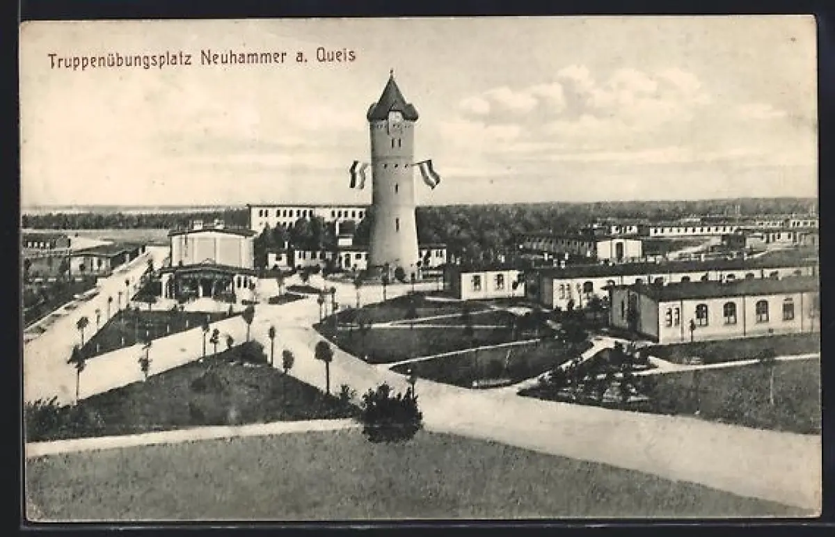 AK Neuhammer a. Queis, Truppenübungsplatz mit Turm und Anlagen