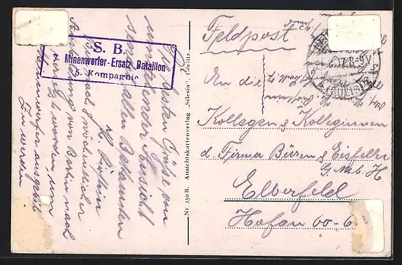 alte Ansichtskarte, gelaufen 1917, rückseitig Oberflächenschaden, rückseitig Klebe- und Papierreste, guter Zustand