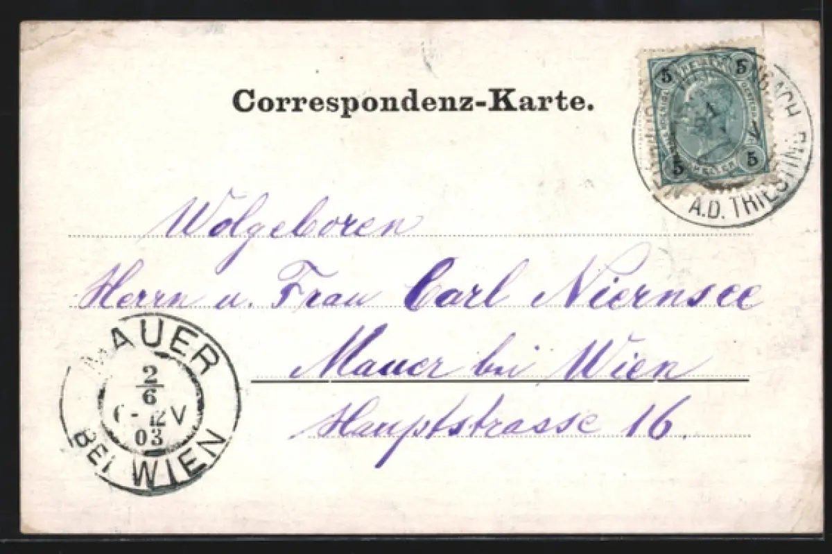 gelaufen 1903, Eckknicke li. unten u. re. oben, Stempelspur, guter Zustand