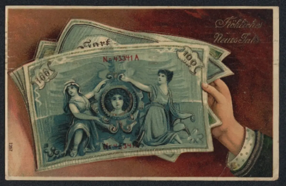AK Neujahrsgruss, Geldscheine
