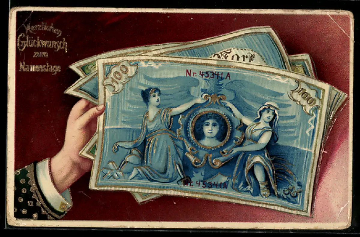 AK Neujahrsgruss, Geldscheine
