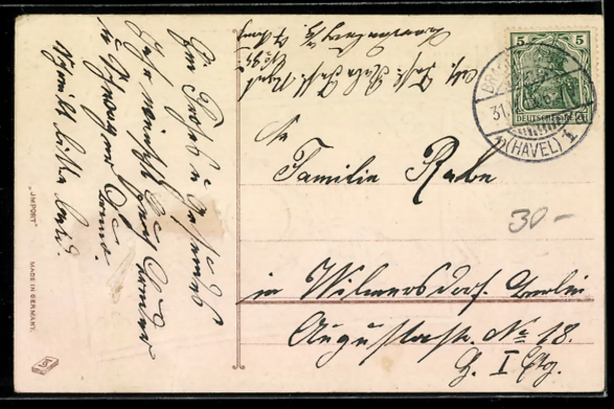 alte Ansichtskarte, gelaufen, durchgehende Bugspur re., rückseitig Oberflächenschaden, guter Zustand