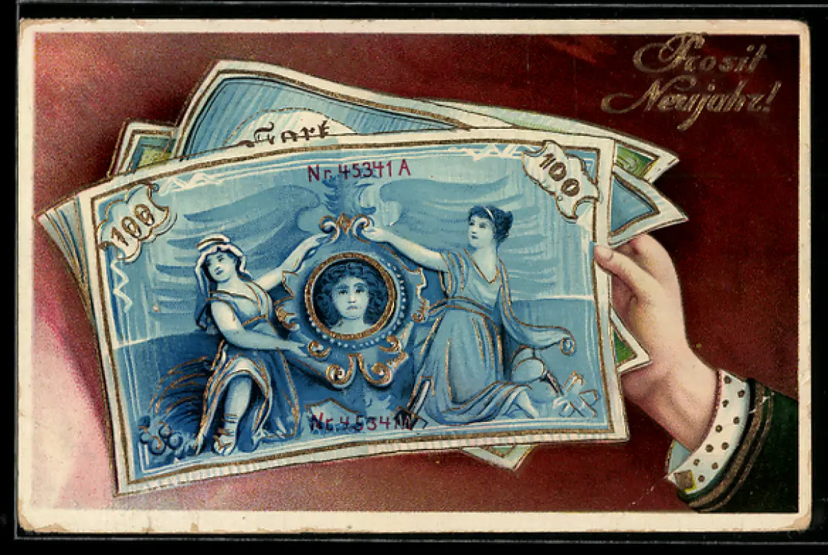 AK Neujahrsgruss, Geldscheine