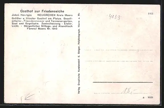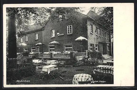 AK Neukirchen /Kr. Moers, Gasthof zur Friedenseiche J. Heintges, Gartenansicht