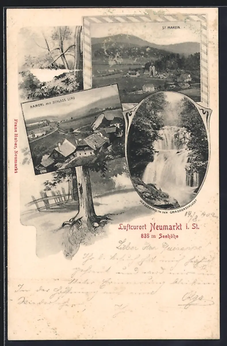 AK Neumarkt i. St., Hamerl mit Schloss Lind, St. Marein, Wasserfall in der Graggerschlucht