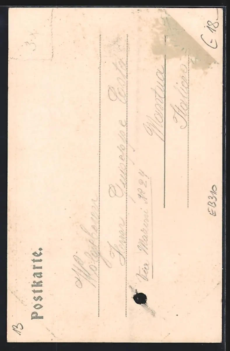 alte Ansichtskarte, ungelaufen, vorderr- und rückseitig Klebe- und Papierreste, sonst guter Zustand