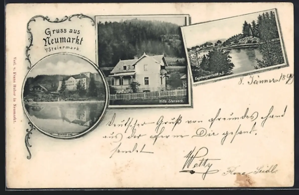 AK Neumarkt i. Steiermark, Schloss Lind, Villa Sterneck, Engelmayerteich