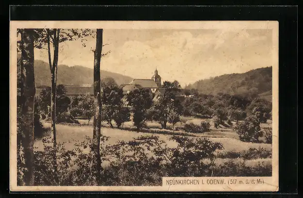 AK Neunkirchen i. Odenw., Ortspartie mit Kirche