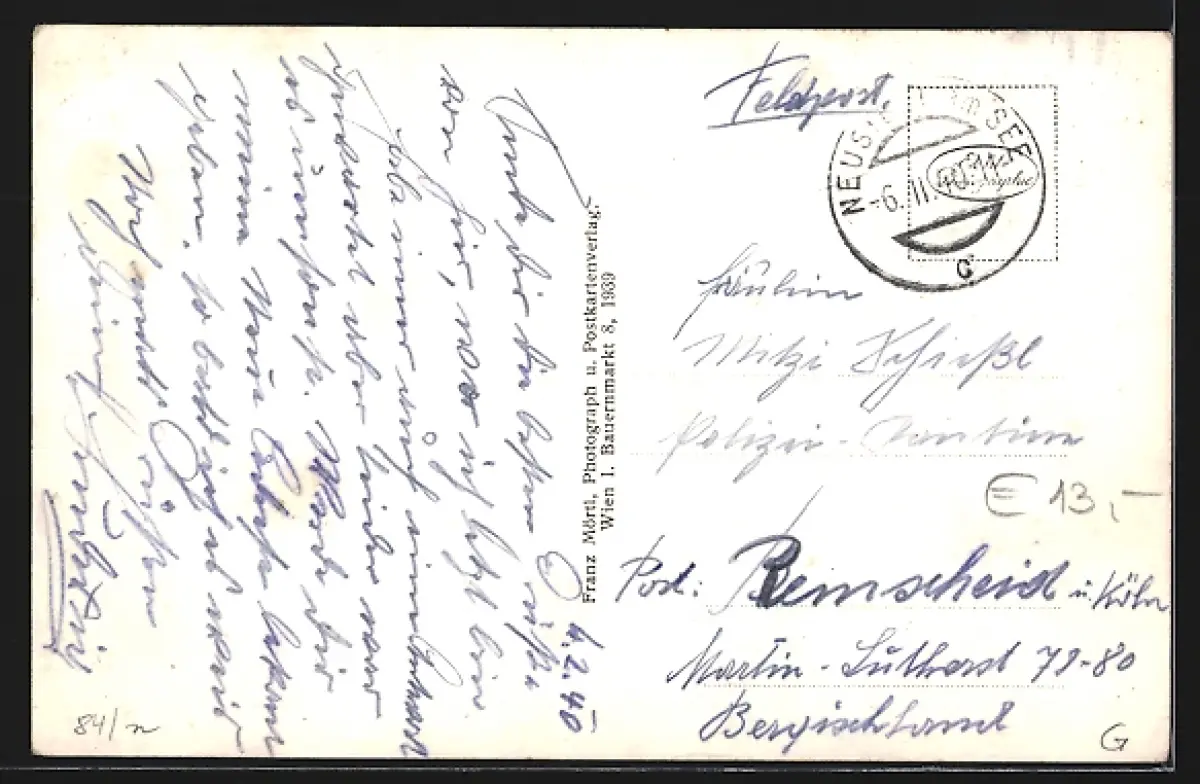 alte Ansichtskarte, gelaufen 1940, Klebe- und Papierreste oben re., guter Zustand