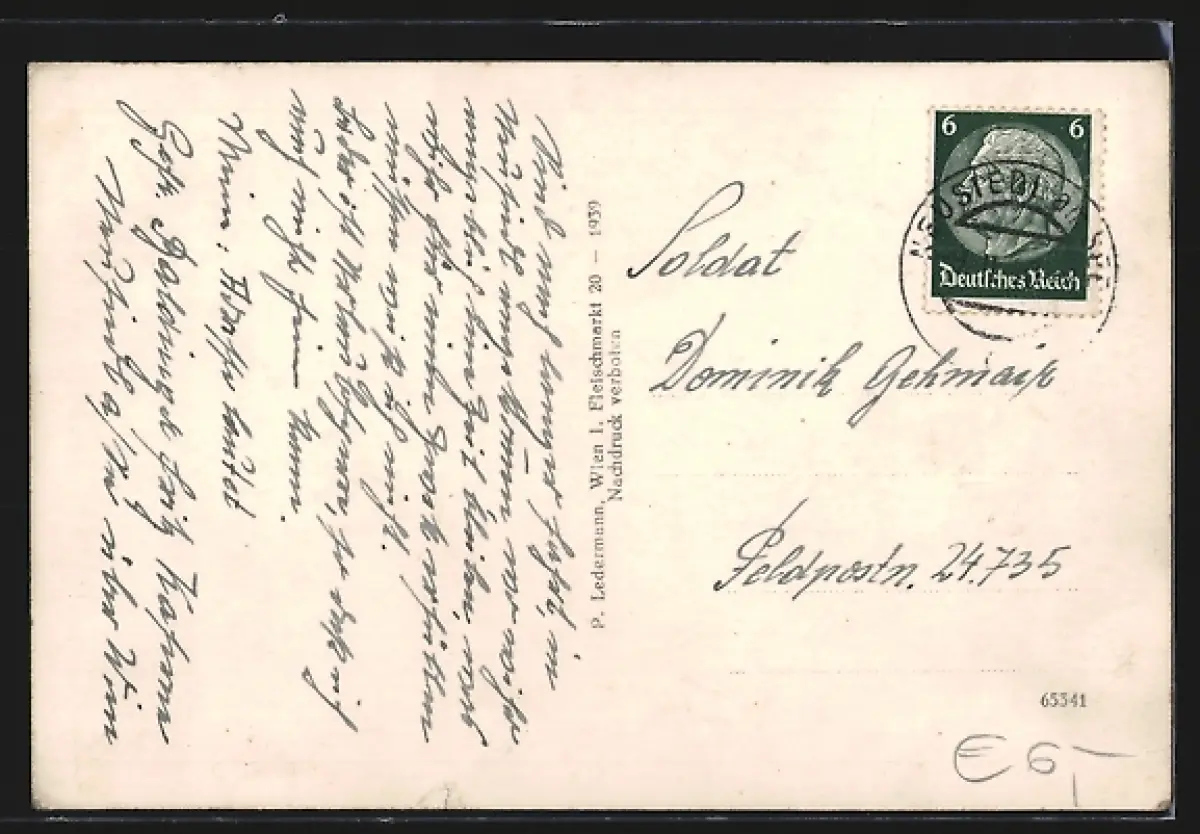 alte Ansichtskarte, ungelaufen, Eckknick links unten, kleiner Einriss untere Kante, sonst guter Zustand