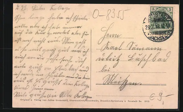 alte Ansichtskarte, gelaufen 1913, guter Zustand