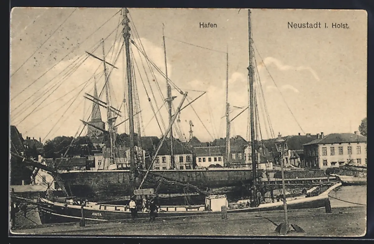 AK Neustadt / Holstein, Ankernde Schiffe im Hafen
