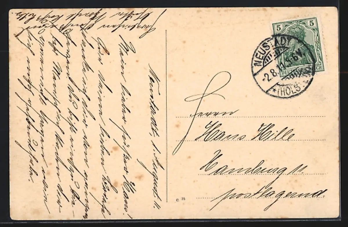 alte Ansichtskarte, gelaufen 1911, Eckknicke li. oben, Stempelspur, guter Zustand