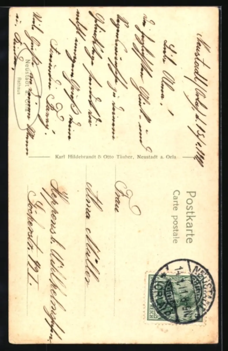 AK Neustadt a. Orla, Rathaus mit Strassenpartie