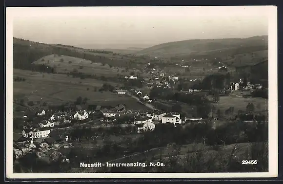 AK Neustift-Innermanzing /N.-Oe., Totalansicht vom Berg aus