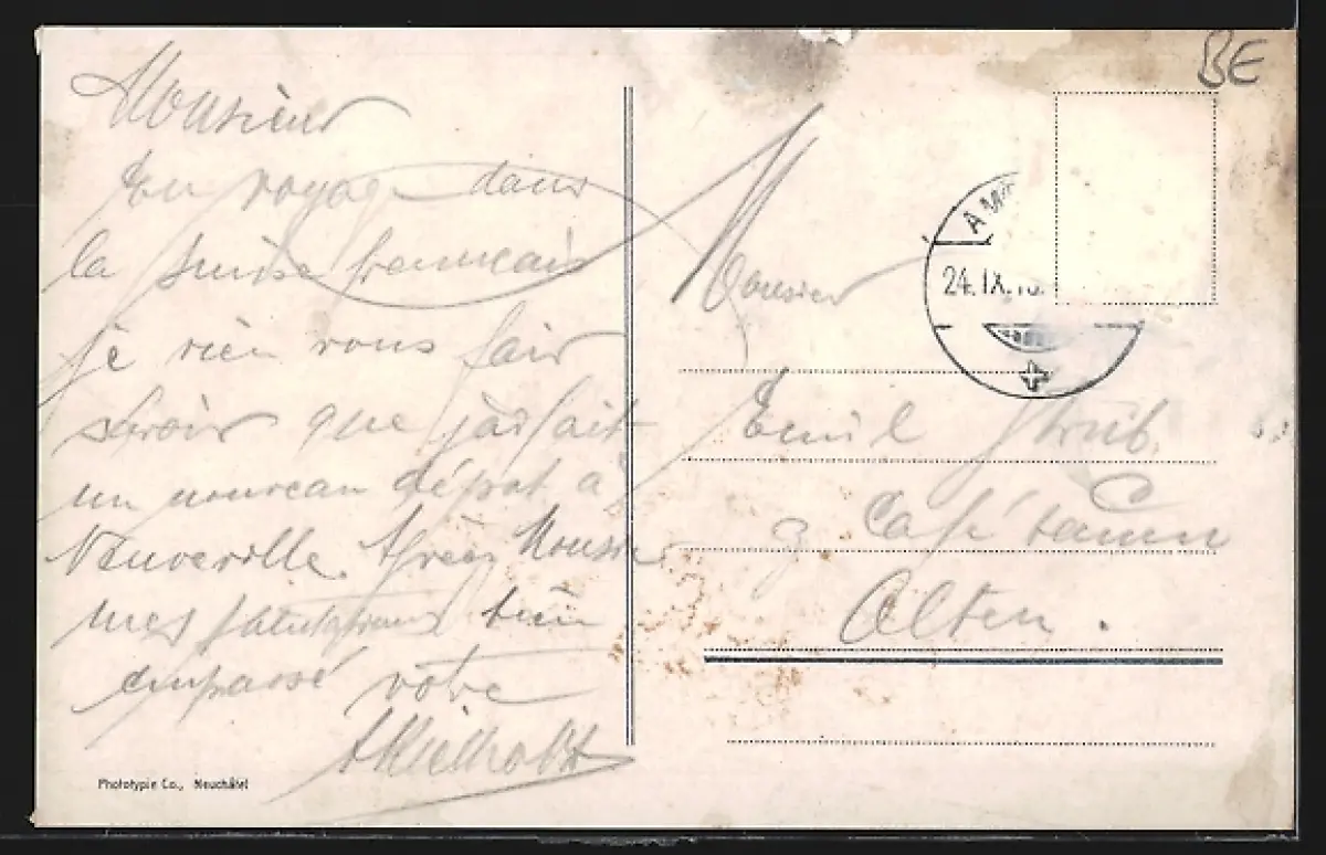 alte Ansichtskarte, gelaufen, Briefmarke entfernt, guter Zustand