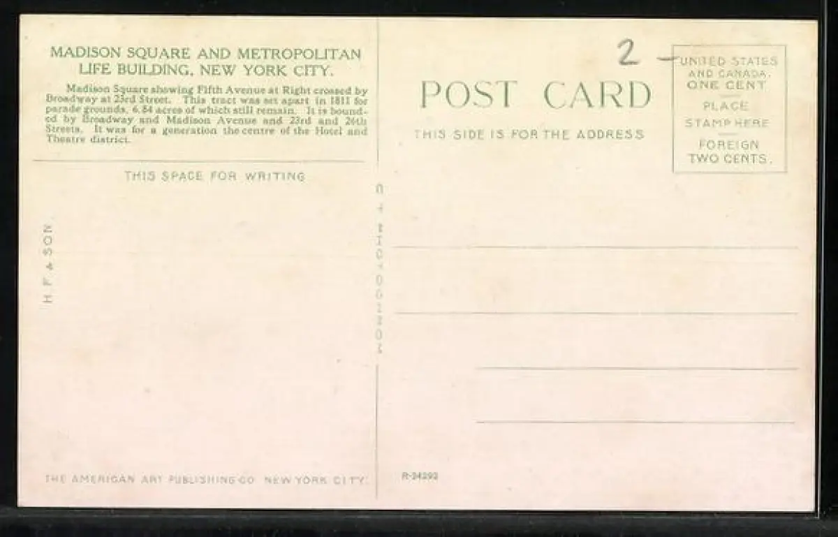 AK New York, NY, Madison Square, Metropolitan Life and Flat Iron Buildings