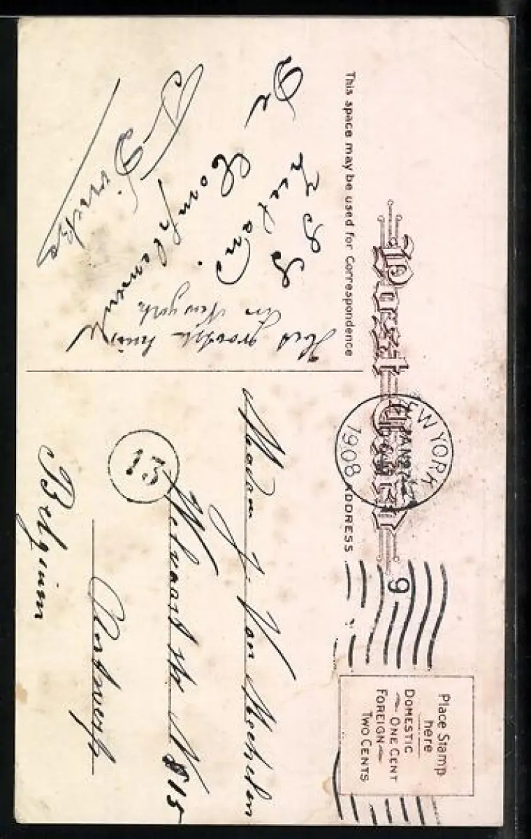 gelaufen 1908, Briefmarke entfernt, Eckknick rechts unten und links oben, guter Zustand