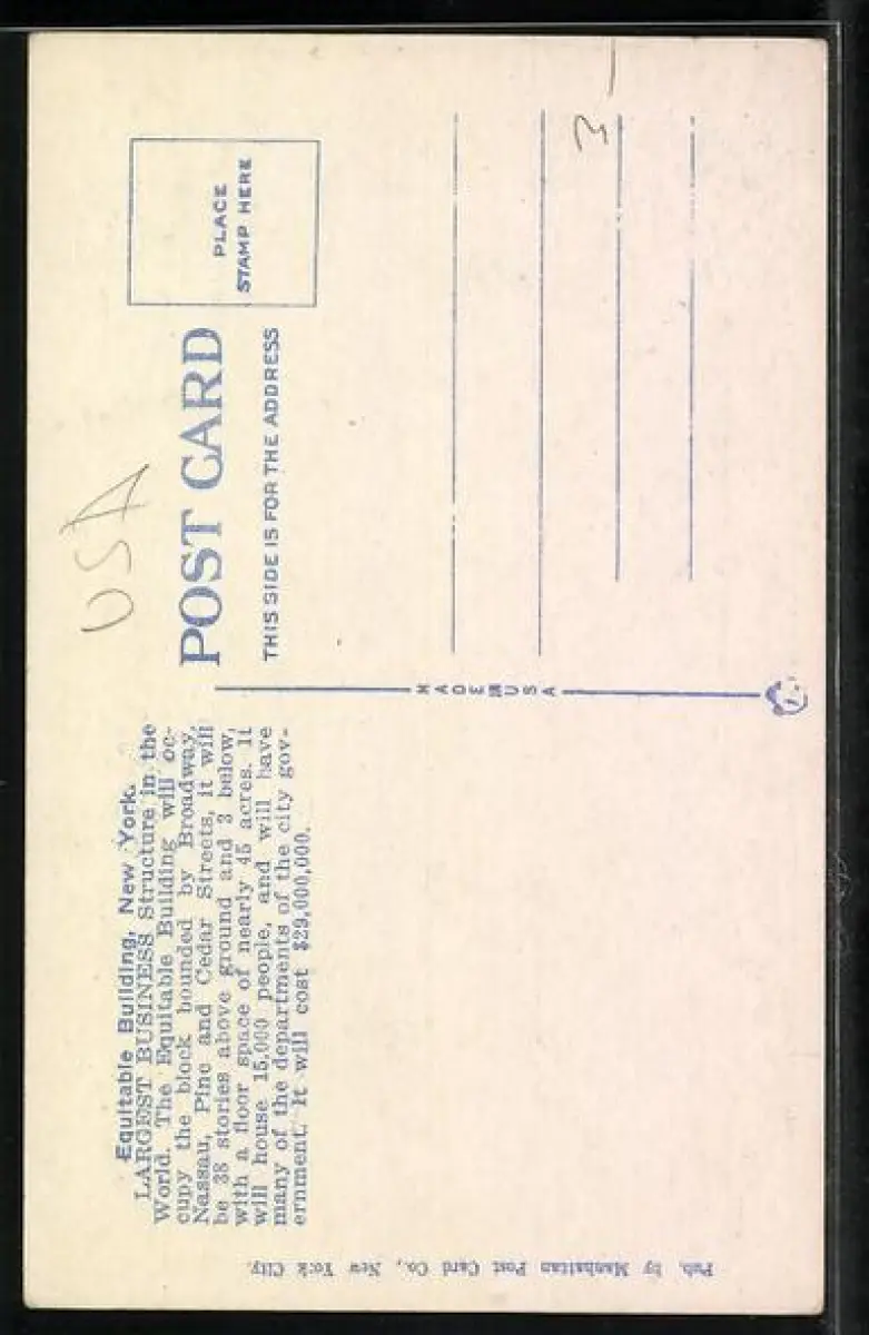 Personenbezogene Daten auf der Rückseite der Karte wurden durch blauen Textmarker unkenntlich gemacht. Die blauen Stellen sind auf die Vorderseite durchgeweicht und wirken sich negativ auf das Postkartenfoto aus