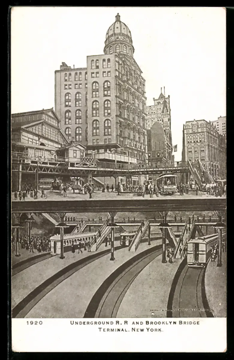 AK New York, NY, Underground R. R. and Brooklyn Bridge Terminal, U-Bahn