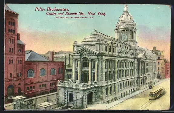 AK New York, Police Headquarters, Centre and Broome Sts., Strassenbahn