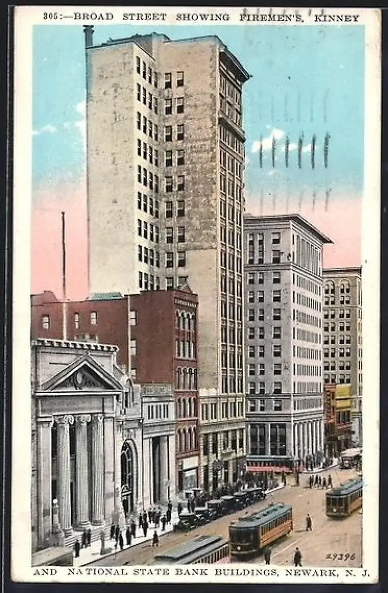 AK Newark, N. J., Broad Street showing Firements, Kinney and National State Bank Buildings, Strassenbahn