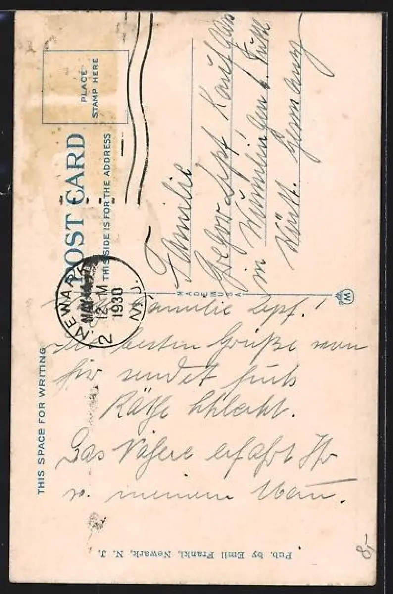 alte Ansichtskarte, gelaufen 1930, Briefmarke entfernt, rückseitig Oberflächenschaden, Eckknick li. oben, Stempelspur, guter Zustand