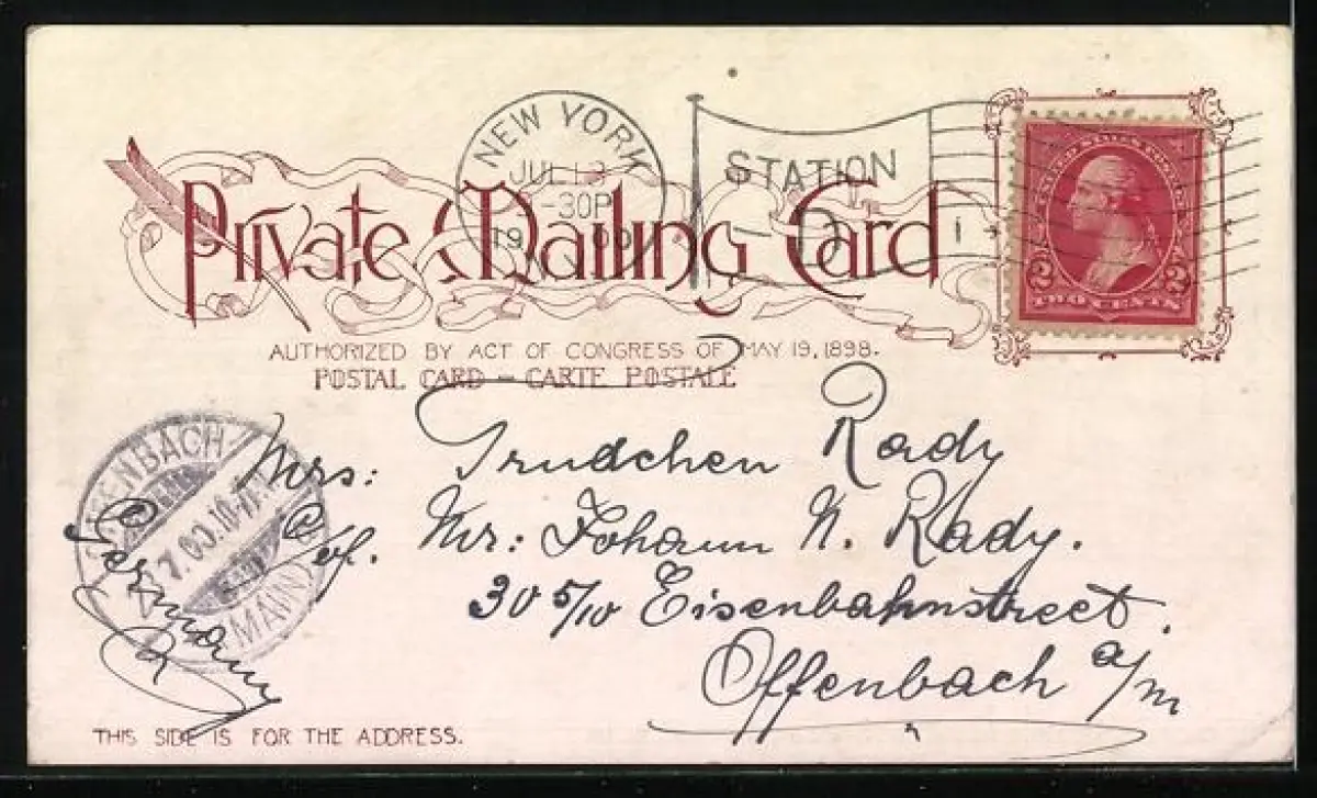 gelaufen 1900, Eckknicke re. unten u. li., guter Zustand