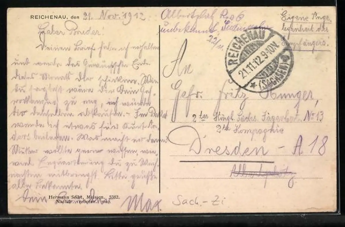 alte Ansichtskarte, gelaufen 1912, Eckknick re. unten, guter Zustand