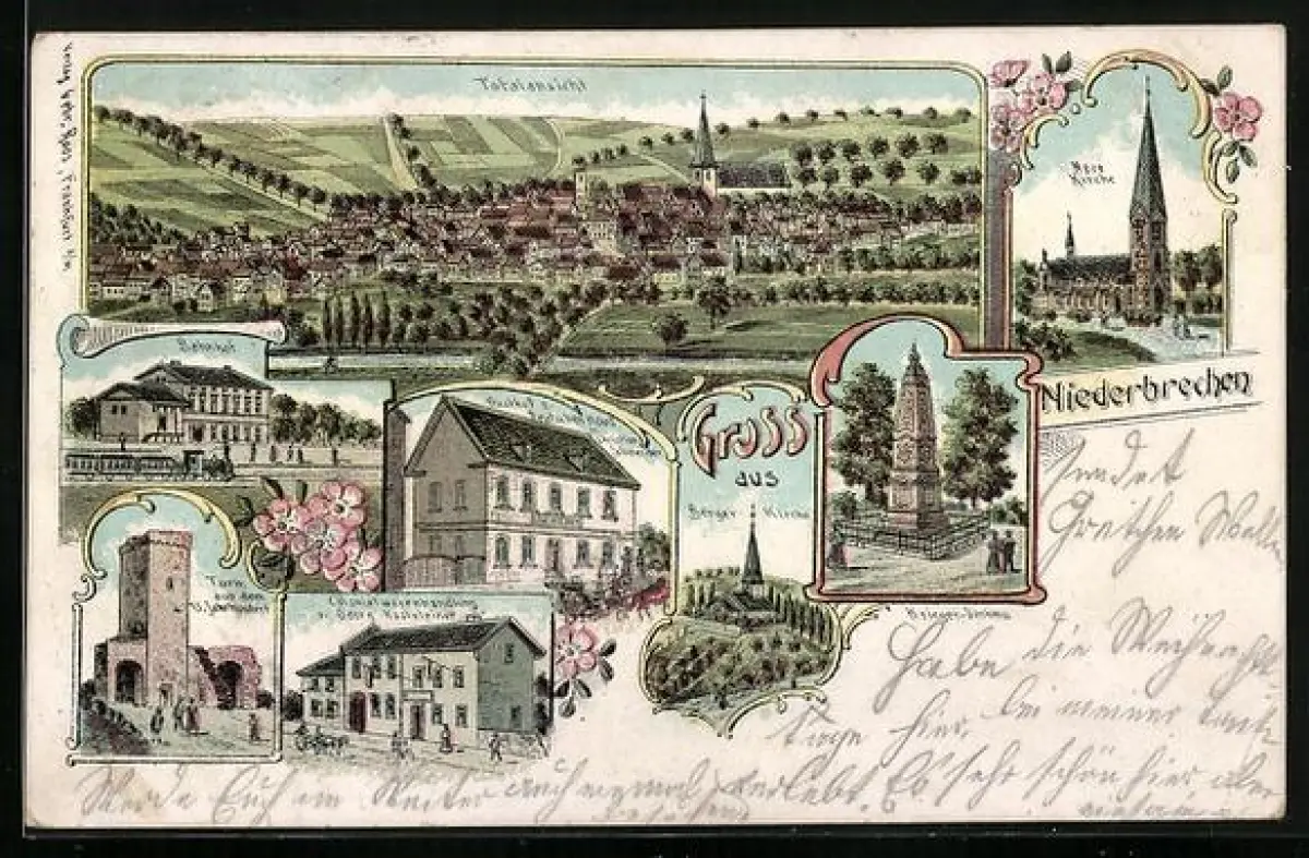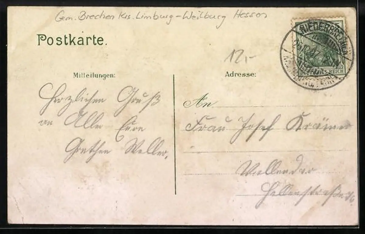 AK Niederbrechen, Gasthof z. Deutschen Haus v. Christian Schneider, Colonialwarenhandlung v. Georg Kasteleiner