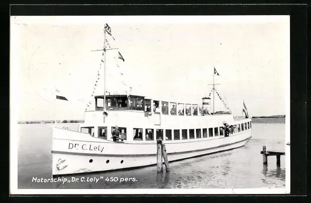 AK Niederländischer Salondampfer Dr. C. Lely mit Flaggengala in See stechend