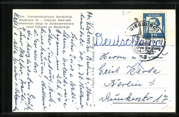 Personenbezogene Daten auf der Rückseite der Karte wurden durch blauen Textmarker unkenntlich gemacht. Die blauen Stellen sind auf die Vorderseite durchgeweicht und wirken sich negativ auf das Postkartenfoto aus