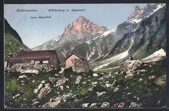 AK Niedersurenen, Schlossberg und Spannort. Gasthaus Zum Alpenrösli