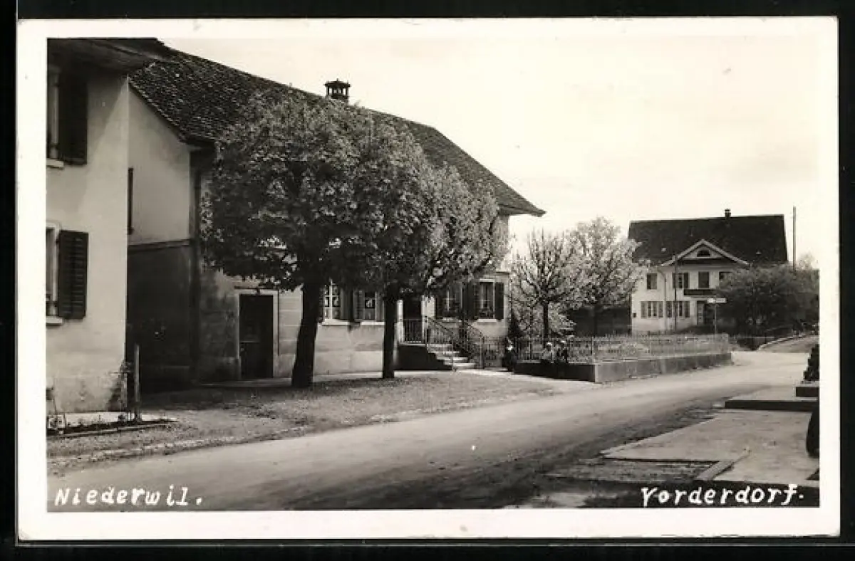 AK Niederwil, Vorderdorf, Strassenpartie mit Gasthaus