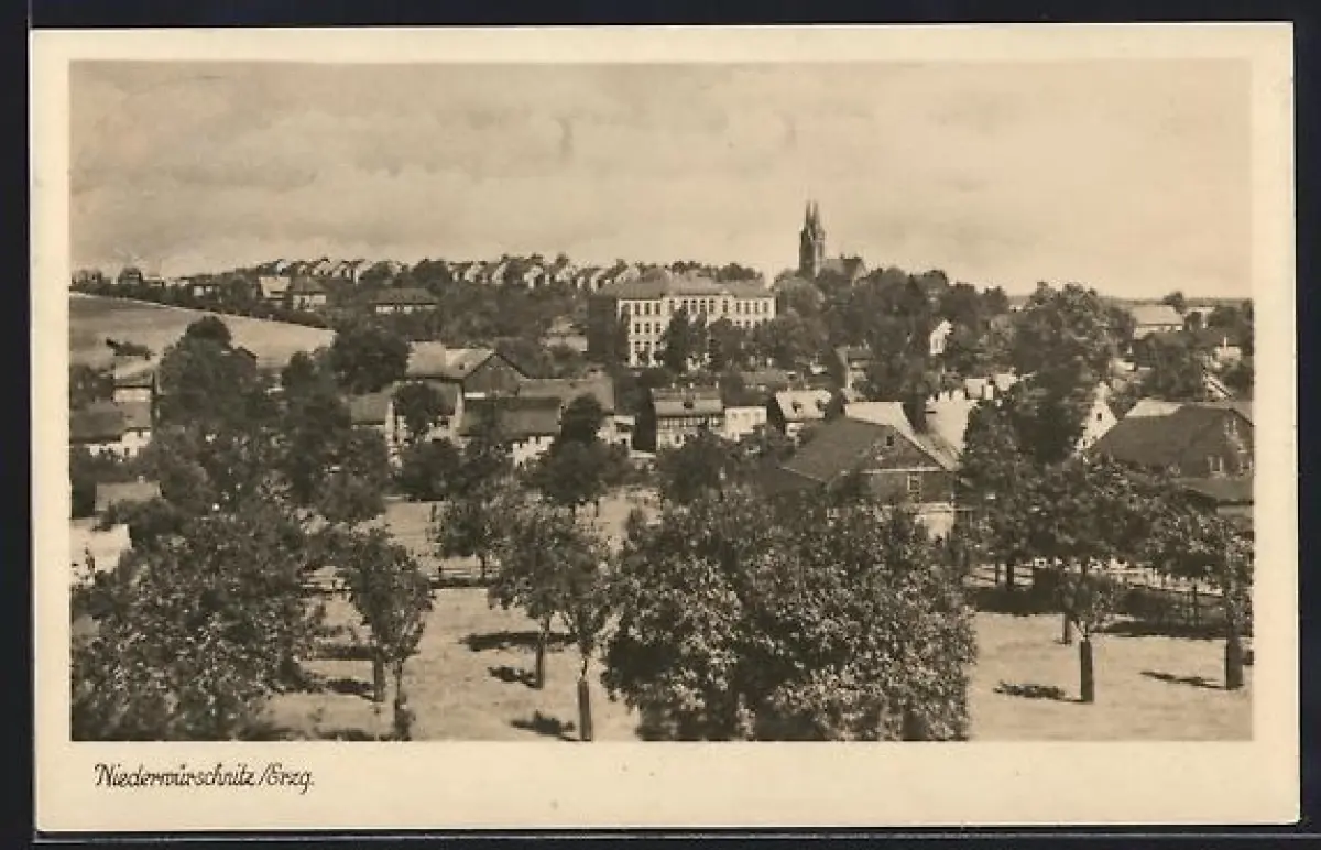 AK Niederwürschnitz, Ortsansicht aus der Vogelschau