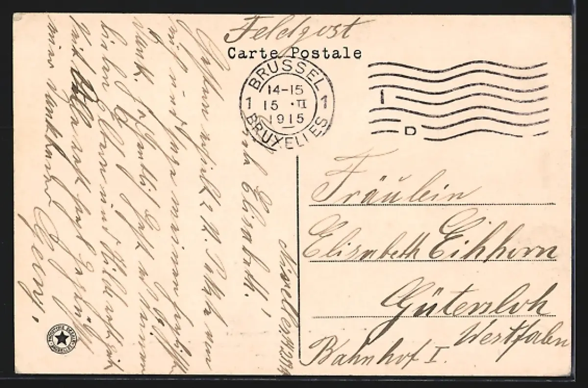 gelaufen 1915 als Feldpost, guter Zustand